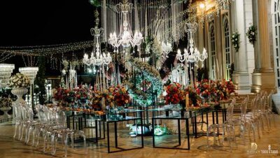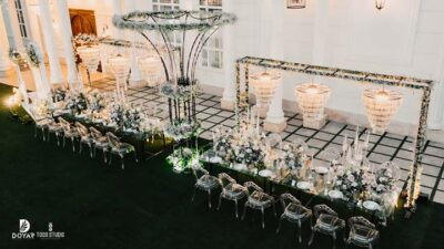 چیدمان مبلمان، ظروف پذیرایی، ست روی میز مهمان ( شمعدان، دستمال و حلقه، زیربشقابی)، آتش بازی، مه سرد، پیانو، منقل، چاینیزبار