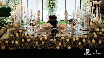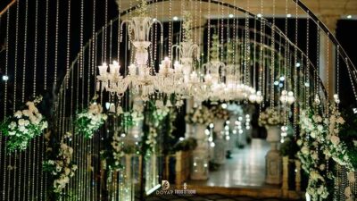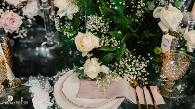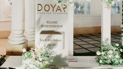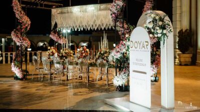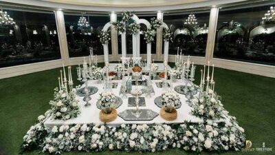 دیزاین جایگاه عروس و داماد، دیزاین سفره عقد با گل طبیعی، دیزاین میز ویژه والدین، دیزاین میز مهمان، دیزاین ورودی باغ، بار شمع و گل، دیزاین میزشام، دیزاین جایگاه کیک