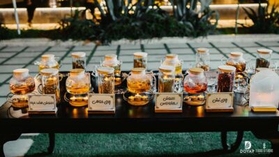 10 مدل آبمیوه طبیعی با گارنیش ویژه، 3 مدل سیروپ و شیک نوتلا، سرو چای و نسکافه، سرو کوکتل و میوه استوایی، انواع شیرینی (ترافل، تارت میوهای، کیک، باقلوا استانبولی، کوکی، کاپ کیک)